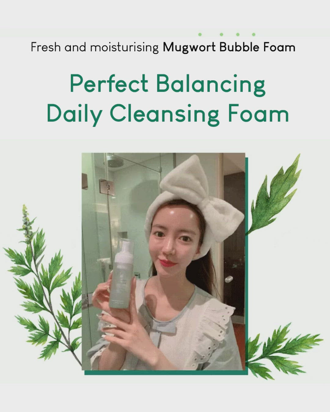 - Korean grown Mugwort is extracted with the old traditional Gujunggupo method (steam and sun-dry nine times) and formulated in the cleansing foam.
